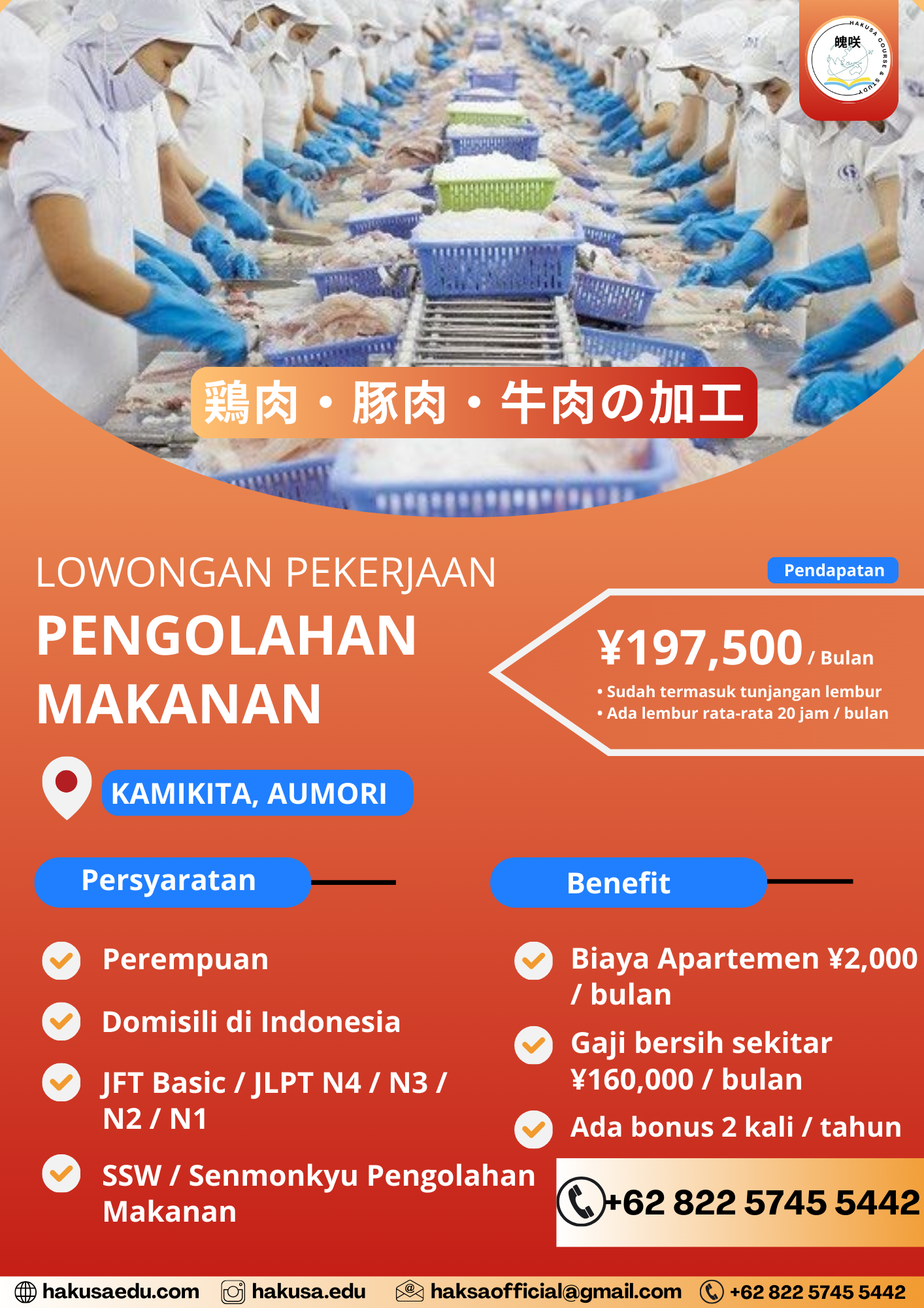 Meskipun Jepang terkenal dengan teknologinya, industri pengolahan makanan masih membutuhkan tenaga manusia. Inilah kesempatan emas Anda untuk bergabung dalam industri pangan canggih di Jepang!